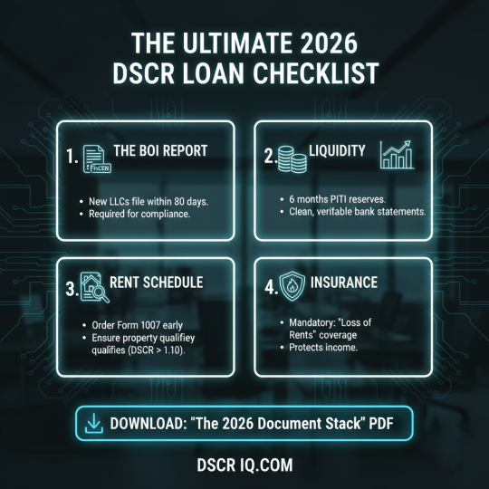 For a complete, printable list of all required documentation, click here to download our exclusive “The 2026 Document Stack” PDF. This comprehensive checklist ensures you never miss a step in securing your DSCR financing.